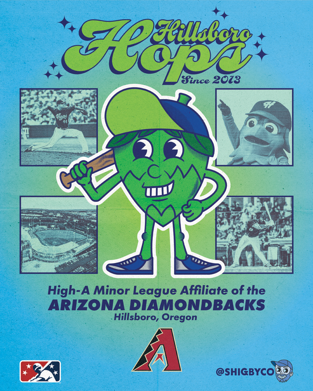 This is a series of concept art and posters created around Barley Hops, the mascot of the Minor League Baseball (MiLB) team called the Hillsboro Hops. All featured work was created in 2023 and 2024.