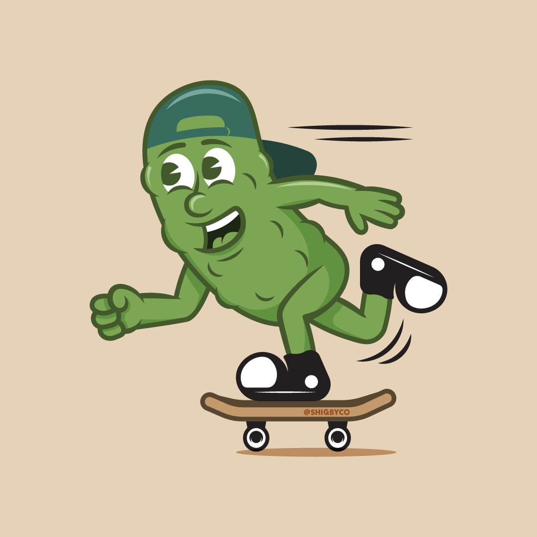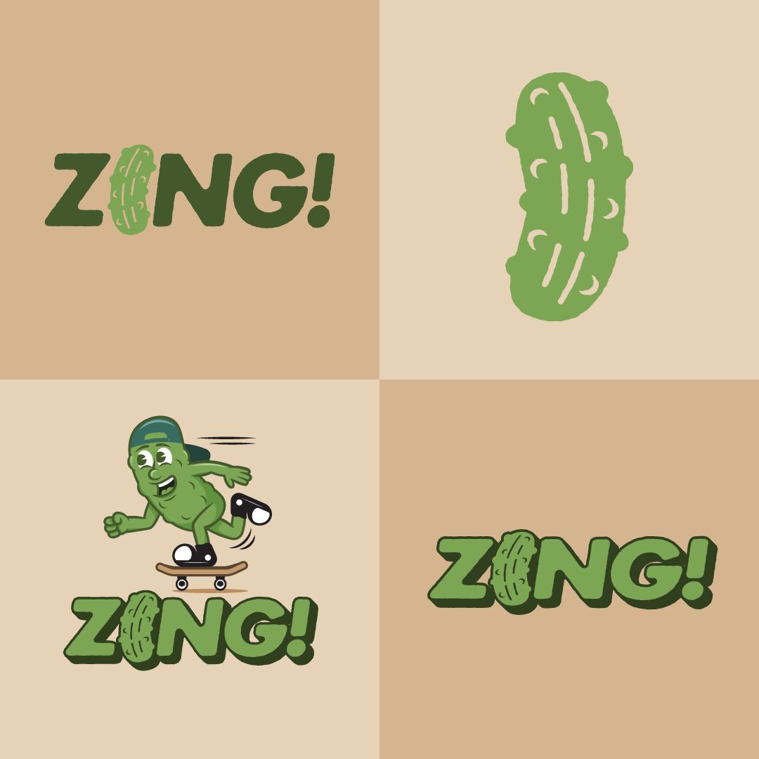 This energetic pickle is a mascot logo concept for a pickle brand called "Zing." Zing offers pickles in a variety of bold and exciting flavors.